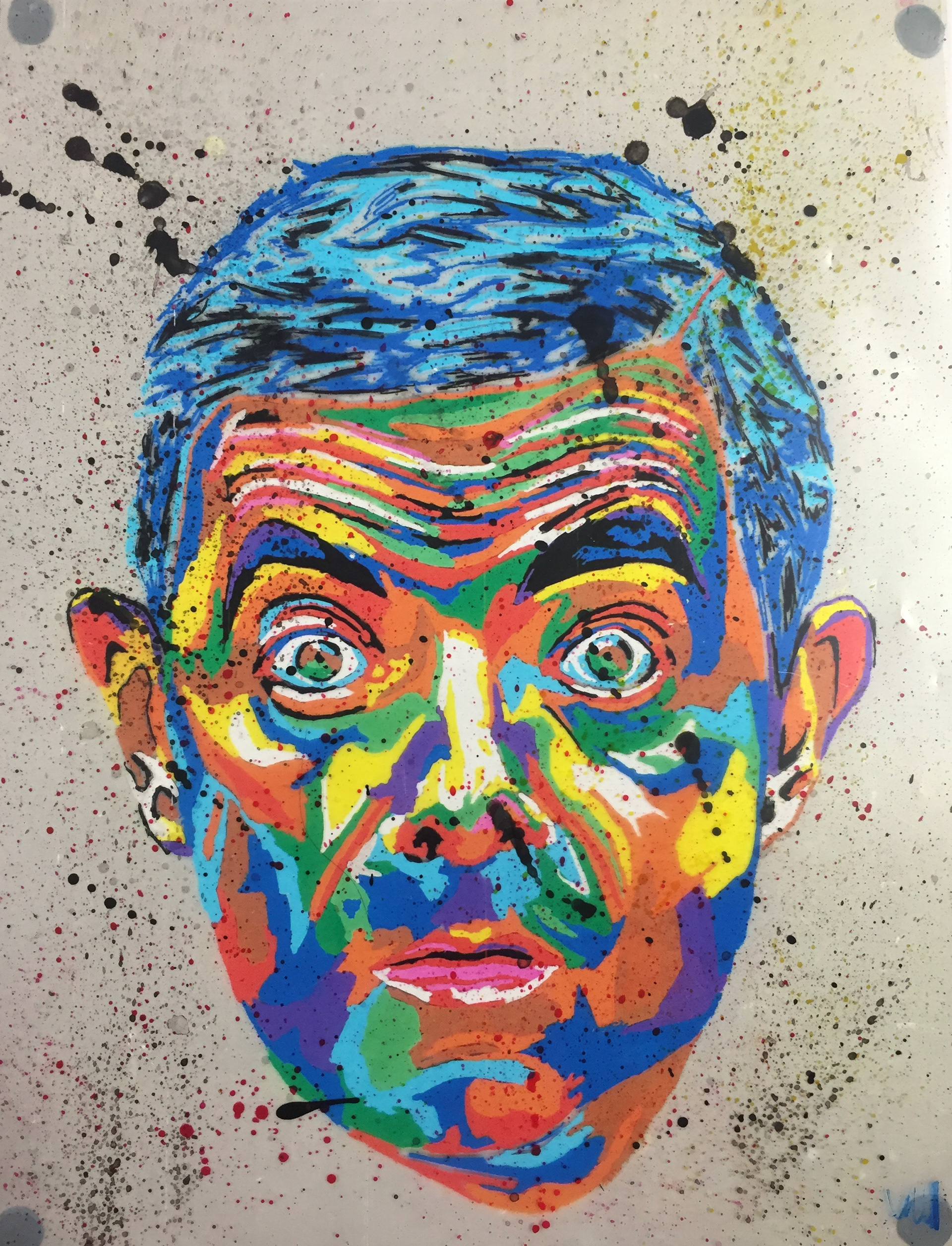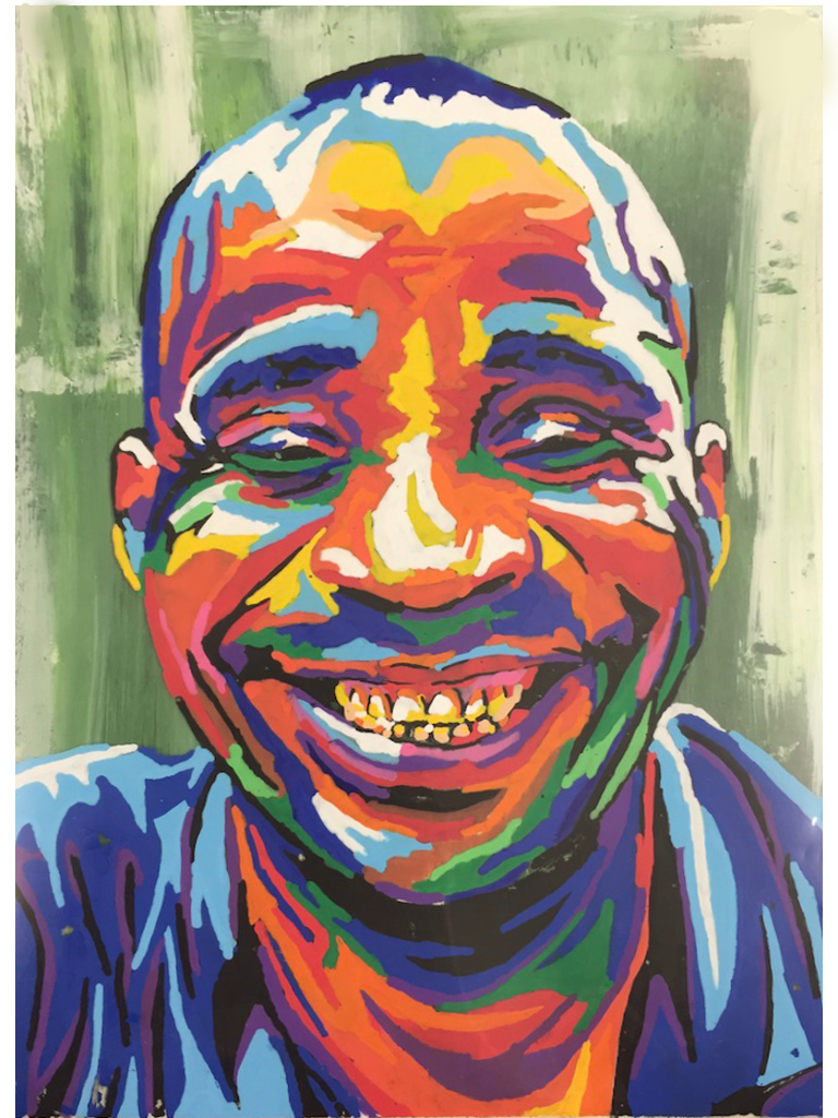 A selection of portraits created using posca pens on acetate. The first painting is 1m x 1m perspex bolted onto MDF